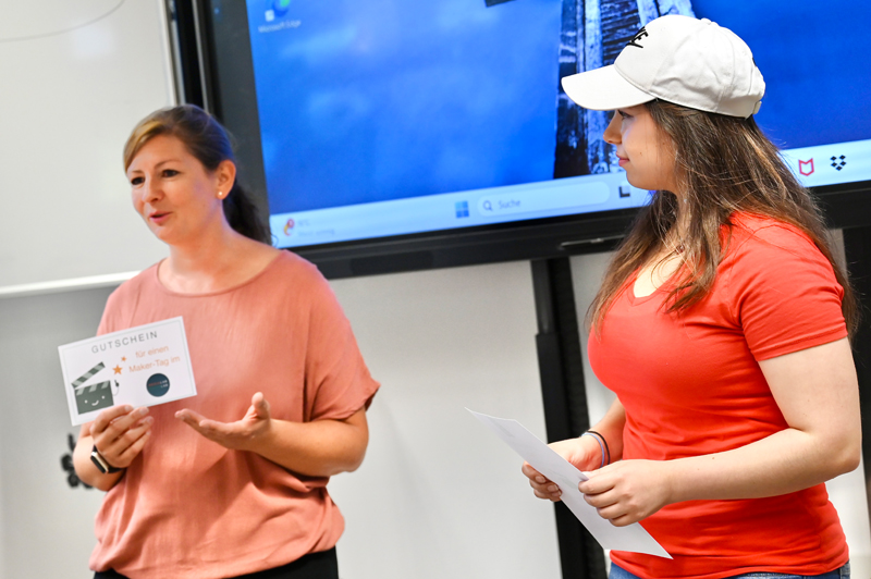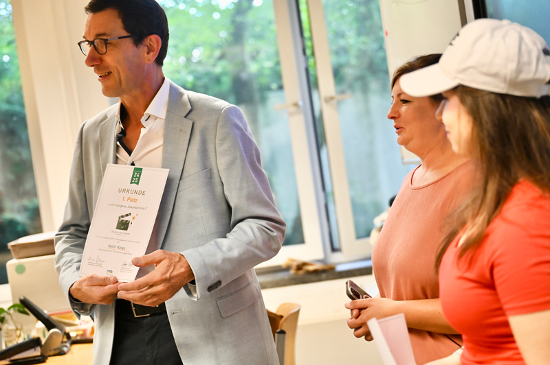 Mit ihrem Video überzeugte Nehir die Jury durch Fachkompetenz, Gestaltung und sprachliche Qualität – wir gratulieren herzlich zu dieser hervorragenden Leistung! Anfang Juli fand dazu in unseren Räumlichkeiten die Siegerehrung mit Frau Weyer statt, die Nehir viel Erfolg dabei wünschte, sich auch in der nächsten Wettbewerbsrunde, dann auf Landesebene, überzeugen zu können!
