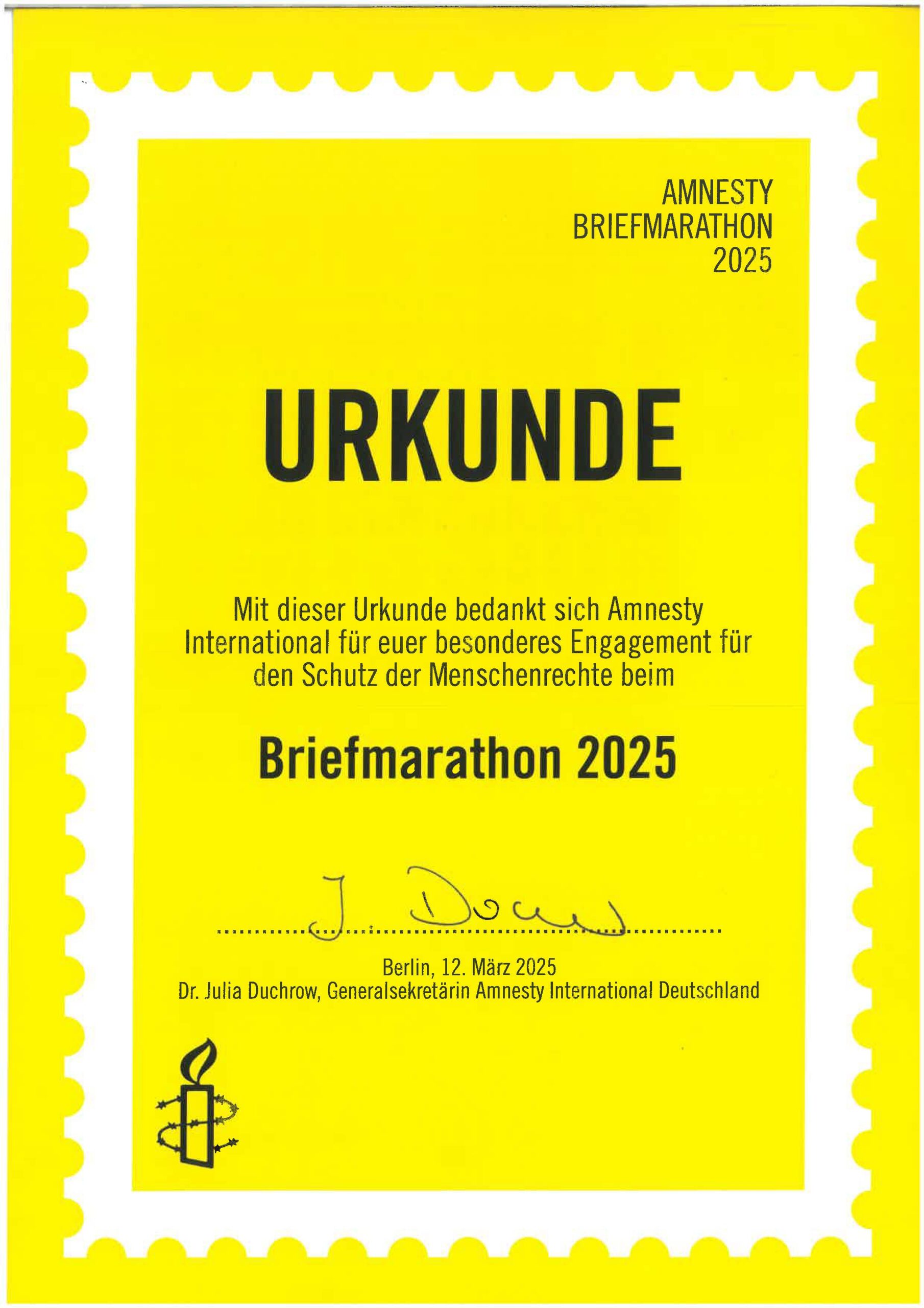 An dem Aktionstag wurden 1.621 Appellbriefe an Regierungen geschrieben!!