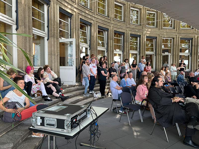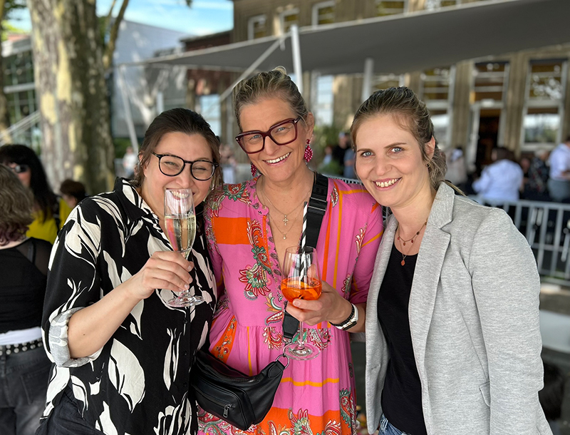 Bereits im zweiten Jahr fand die festliche Verabschiedung am Samstag, 12. Juli 2025 in den Rheinterrassen statt. Während die floristischen Kunstwerke seit dem praktischen Prüfungstermin am Donnerstag im Innenraum ausgestellt waren und zwei Tage später noch in voller Pracht zu bewundern waren, konnte die Ehrungsfeier selbst auf der Terrasse mit überdachter Bühne und Rheinblick stattfinden – ein wahrhaft würdiger Rahmen für die Ausstellung der überwältigenden floristischen Werkstücke unserer FLO!