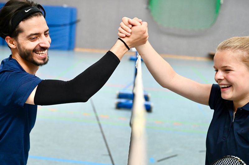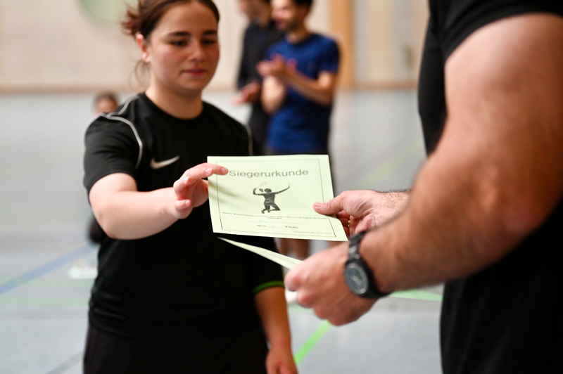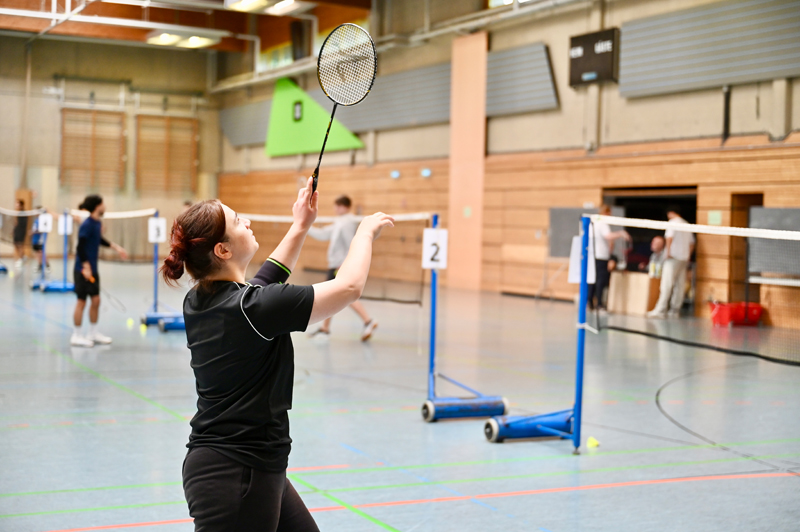 Eine bunte Mischung verschiedener Schüler:innen aus unterschiedlichen Bildungsgängen standen sich in Einzelduellen im Badminton gegenüber und machten unter sich die Sieger:innen aus.
