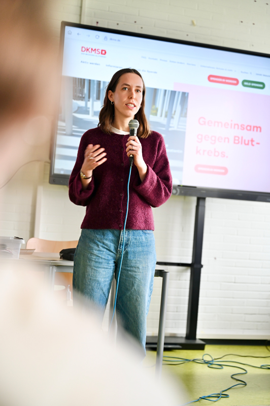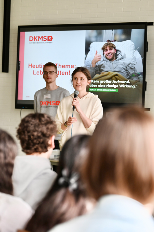 Ziel der Veranstaltung war es, junge Menschen für das Thema Blutkrebs und Stammzellspende zu sensibilisieren. Dazu kamen sowohl Expertinnen und Experten der DKMS an die Schule, als auch echte Spenderinnen und Spender sowie Empfängerinnen und Empfänger, die von ihren persönlichen Erfahrungen berichteten. Diese direkten Begegnungen sollten den Schülerinnen und Schülern einen authentischen Einblick geben und die Bedeutung einer Registrierung greifbar machen.